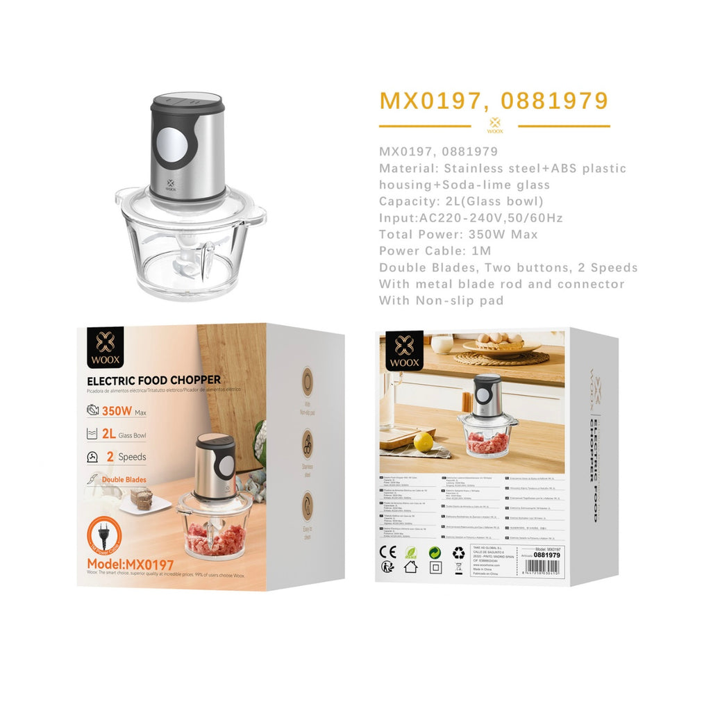 Electric food chopper 350W 2.0L glass container Speed control - - MX0197
